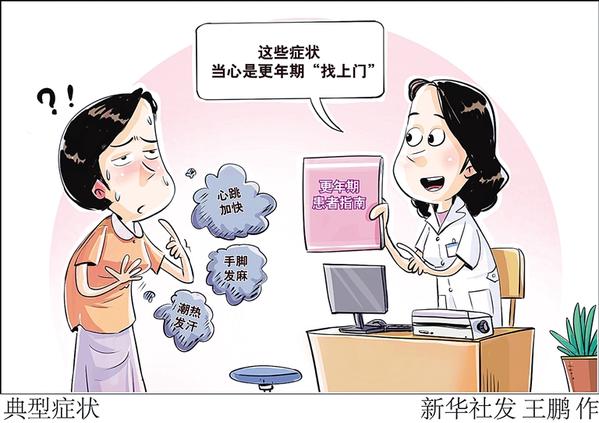 许多更年期女性经历过这样的时刻:突然心跳加快、手脚发麻,甚至怀疑发生了心梗;无缘无故出现潮热发汗,感到一股热气从胸前腾起……这些症状,都很有可能是更年期导致的。“更年期是每个女性都会经历的一段自然过程,不用害怕也不必排斥,而要用平和的心态迎接它。”北京协和医院妇产科学系副主任陈蓉说。如果症状影响到日常生活,应及时寻求医生帮助。 新华社发 王鹏 作