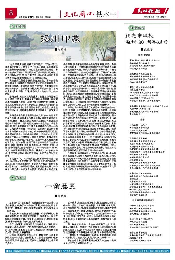 扬州之美,美在南北风情兼具。地理上扬州属长江以北,在人文风情上,却蕴含着江南的温婉细腻。这种南北基因的碰撞与交融,成就了扬州独特的文化秉性:语言上属江淮官话,方言与中原相近;饮食上仍多面食;生活习俗如婚丧嫁娶,带有明显的中原文化特征。我虽在扬州时间不长,却能清晰感知这座城市融合了多重文化元素。