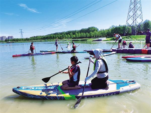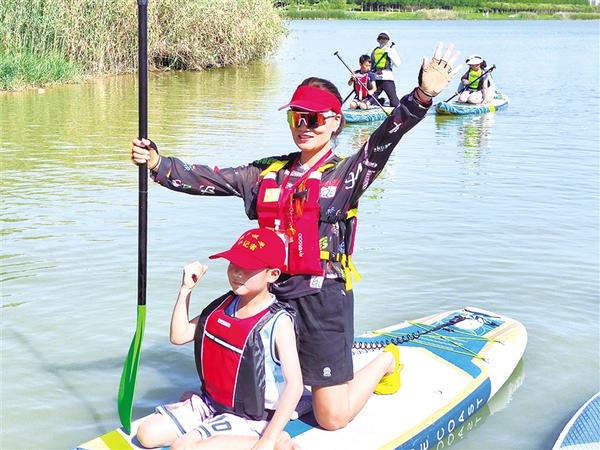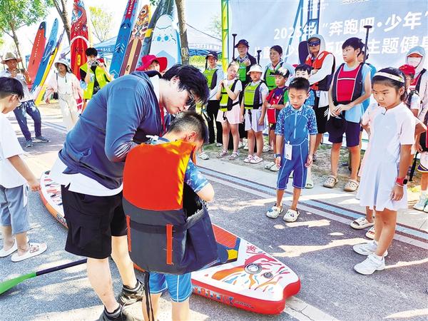 本报讯 8月16日上午,50余名周口报业小记者齐聚引黄调蓄湖畔,在“奔跑吧·少年”儿童青少年桨板主题健身活动中,深度体验了桨板运动的独特魅力。