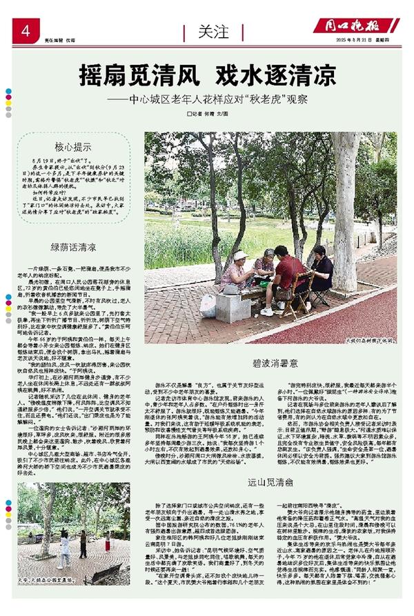 近日,记者走访发现,不少市民早已找到了“家门口”的休闲纳凉好去处。采访中,大家还热情分享了应对“秋老虎”的“独家秘笈”。