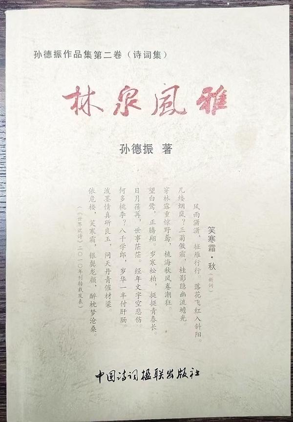 孙德振的另一重身份是教育理论研究者。其专著《杏坛文絮》被教育部、国家图书馆收藏,“教育如诗”章节探讨诗词育人功能。他主张,格律训练能培养思维严谨性,比刻板德育更有效。