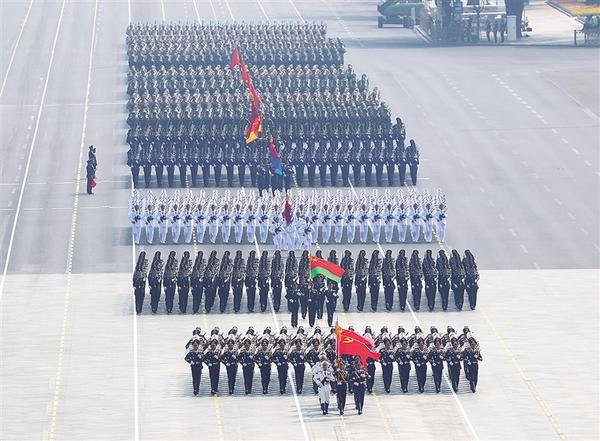 本次阅兵首先接受检阅的是13个徒步方队,人民军队全面深化改革后,形成新型军兵种结构布局。 四个军种、四个兵种和武警部队方队首次擎军兵种军旗和武警部队旗集中亮相。