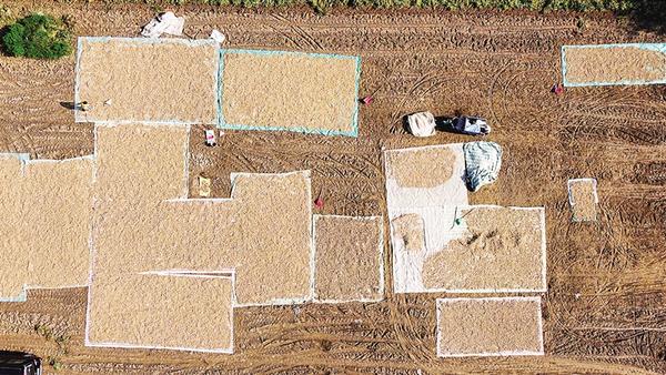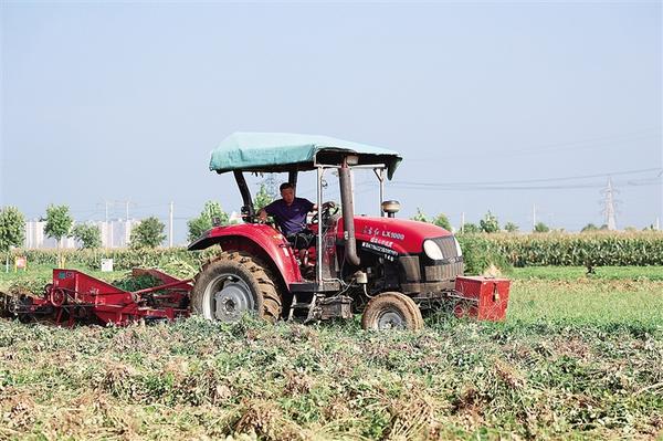 9月2日,淮阳区王店街道黄连村,一派丰收景象。大型花生收获机在田间轰鸣穿梭,转眼间便将粒粒饱满的花生从泥土中“唤醒”;乡亲们紧随其后铺开帆布,新收的花生铺满晒场,仿佛为大地铺上了一层金色的“地毯”。现代农机的高效作业与农人的传统智慧在此交融,饱满的花生裹挟着泥土的芬芳、沐浴着阳光的味道,它们不仅是丰收的见证,更踏出了农业现代化助推乡村全面振兴的坚实足迹。记者 刘俊涛 摄