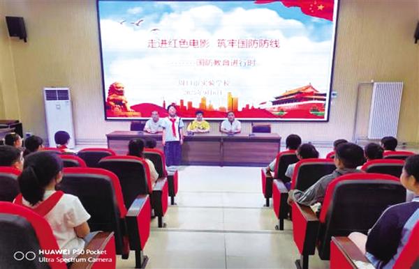 9月8日上午,周口市实验学校小学部200多名学生,在该校会议室开展了一场意义非凡的“观看红色电影,增强国防意识”主题观影活动。 通讯员 李云 摄