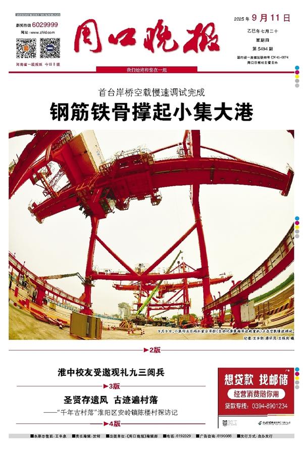 9月9日,小集作业区码头首台岸桥(自动化集装箱岸边起重机)正在空载慢速调试。 记者 王永剑 通讯员 王栋良 摄