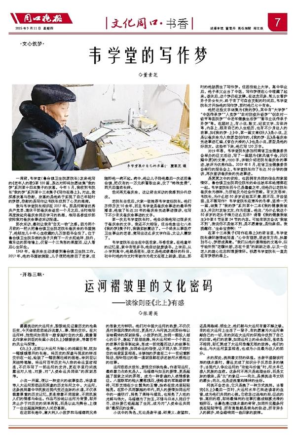 第一次见韦学堂院长时,他告诉我他写过很多关于崔庆余的文字,我还不大相信,但当他拿出七八本《我的梦》集子时,我确实被震动了。一个终身从事医疗卫生事业的老者,竟写出这么多文学作品,太让人震惊了。