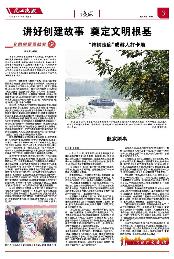 9月10日上午,西华县李大庄乡张柿园村沙河大堤上的“柿树走廊”果实累累,与河中货船、堤上游人构成沙河独特的风景线。每到秋季,“柿树走廊”的柿子缀满枝头,如一个个灯笼,格外耀眼,成为游人的热门打卡地。记者 梁照曾 摄