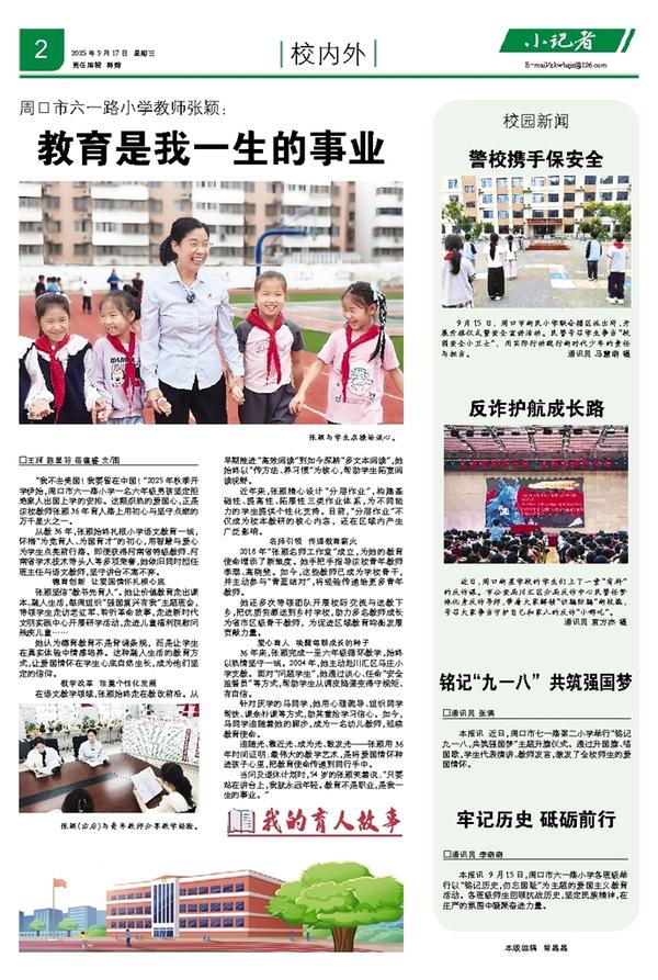 “我不去美国!我要留在中国!”2025年秋季开学伊始,周口市六一路小学一名六年级男孩坚定拒绝家人出国上学的安排。这颗炽热的爱国心,正是该校教师张颖36年育人路上用初心与坚守点燃的万千星火之一。