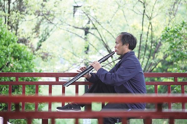 微风伴着细雨,9月22日上午,在淮阳区苏子读书园内,一位市民静坐于凉亭内,面对朦胧雨景,吹奏起悠扬乐曲。一场不期而遇的雨,放缓了城市的节奏,也唤醒了人们对于身边细微美好的感知。记者 刘俊涛 摄