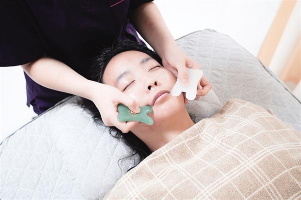 面部刮痧是使用光滑的玉石或铜砭刮痧板,配合天然润肤的介质(如荷荷巴油、玫瑰精油等),对面部相关经络(如胃经、胆经、大肠经等)进行刮拭,疏通面部气血。