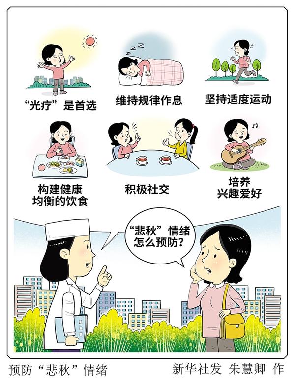 白昼日短,秋风渐起。许多人会感到疲惫、烦躁,甚至抑郁。入秋后情绪的变化可能并非简单的“伤春悲秋”。专家提示,精神心理疾病的发病与季节变化存在一定程度的关联,抑郁症、双相情感障碍等心理疾病与季节关系密切。 新华社发 朱慧卿 作