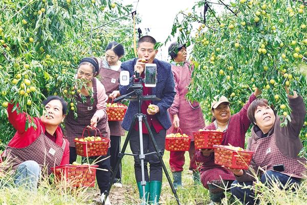 9月23日上午,淮阳区曹河乡的周口宛丘生态农场负责人直播市民采摘冬枣的热闹场景。当日,该农场策划的冬枣采摘节开幕,200亩冬枣缀满枝头,甘甜松脆,非常诱人。为庆祝中国农民丰收节,该农场特推出优惠采摘活动,市民均可享受每斤1.9元的优惠价,畅摘不限购。 记者 梁照曾 摄