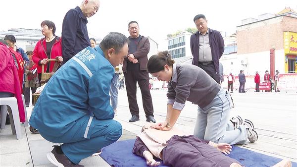 9月24日,扶沟县科协工作人员演示心肺复苏术。当日,2025年扶沟县全国科普月活动启动仪式在该县大程广场举行,本次活动以“提升全民科学素质,夯实科技强国基础”为主题,旨在大力弘扬科学精神、普及科学知识、激发创新活力,为加快建设科技强国贡献蓬勃力量。