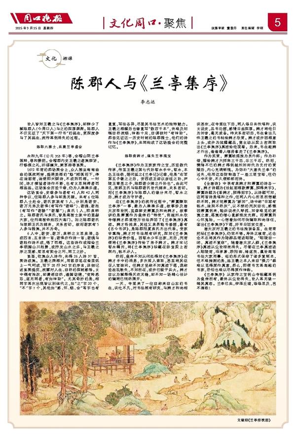 世人皆知王羲之与《兰亭集序》,却鲜少了解陈郡人(今周口人)与之的深厚渊源。陈郡人不仅见证了“天下第一行书”的诞生,更深度参与了其诞生、流传再到消失的过程。