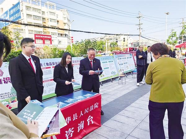 本报讯 为普及食品安全法律法规,营造“尚德守法、共享食安”的良好社会氛围,9月25日上午,西华县人民法院组织干警前往新世界广场开展食品安全普法宣传活动,进一步提高群众的食品安全意识。