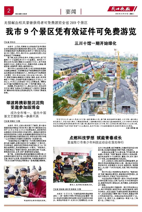 本报讯 昨日,记者从相关部门了解到,第十届中国国际版权博览会(简称版博会)暨2025国际版权论坛将于10月16日至10月18日在青岛举办。来自我市的全国版权示范单位邵波工作室负责人、国家级非遗项目淮阳泥泥狗传承人邵波,将受邀携彩塑泥泥狗系列产品参加本届版博会及国际版权论坛,邵波也成为周口市唯一以及河南省内中国新文艺群体唯一的参展代表。