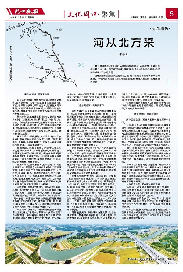 以今天的贾鲁河流向为中轴线,梳理历史脉络,在不同时代,总有一条或者多条南北走向的河流,以不同的模样、不同的名称,沟通着黄河与淮河,时而可通舟楫云集商贾,时而洪水泛滥淤塞不通,演绎着漫长历史进程中人与河协同发展的波澜画卷——