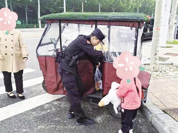 “快停车!先看看老人和孩子有没有事!”车刚停稳,巡特警杨念华、胡泽林和马凯迅速下车,赶到老太太和孩子身边。“阿姨,您和孩子没事吧?” 他们一边轻声安抚,一边仔细检查二人的身体状况。看到老太太和孩子的身体无碍,他们合力扶正三轮车、捡回散落物品、检查车辆安全后,才放心离开。
