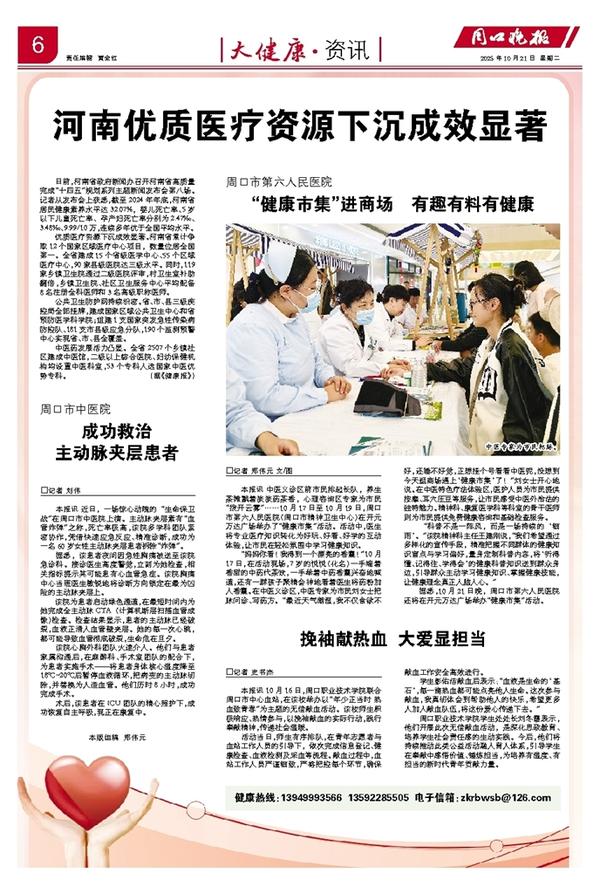 本报讯 近日,一场惊心动魄的“生命保卫战”在周口市中医院上演。主动脉夹层素有“血管炸弹”之称,死亡率极高,该院多学科团队紧密协作,凭借快速应急反应、精准诊断,成功为一名60岁女性主动脉夹层患者拆除“炸弹”。