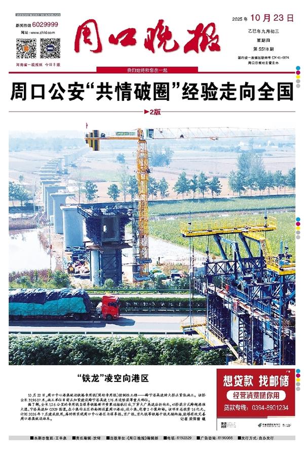 据了解,全长12.6公里的专用线自漯阜铁路新开黄寨站接轨引出,下穿大广高速后折向北,以桥梁方式跨越港淮大道、宁洛高速和G329国道,在小集作业区西南侧设置周口港站,设小集、范营2个装卸场。该项目总投资16亿元,计划2026年7月建成投用,届时将实现周口中心港区与漯阜线、京广线、京九线等铁路干线无缝衔接,能够有效完善周口港集疏运体系。记者 梁照曾 摄