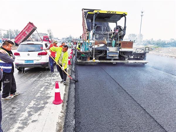 10月22日,106国道改建工程现场一片热火朝天的施工景象。106国道改建工程剩余路段今年3月份复工建设,目前,已完成工程路基土方、水泥碎石下基层施工,正在摊铺水泥碎石上基层和沥青混凝土路面,预计今年年底建成通车。工程竣工投用后,将成为中心城区重要的货运通道,能够提高整体通行效率。记者 王映 摄