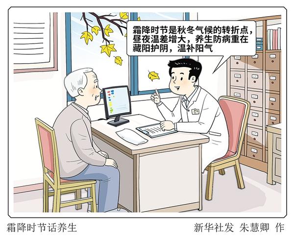 10月23日是秋季的最后一个节气霜降。中医专家介绍,这一时节是秋冬气候的转折点,气温会进一步下降,昼夜温差增大,养生防病重在藏阳护阴,温补阳气。
