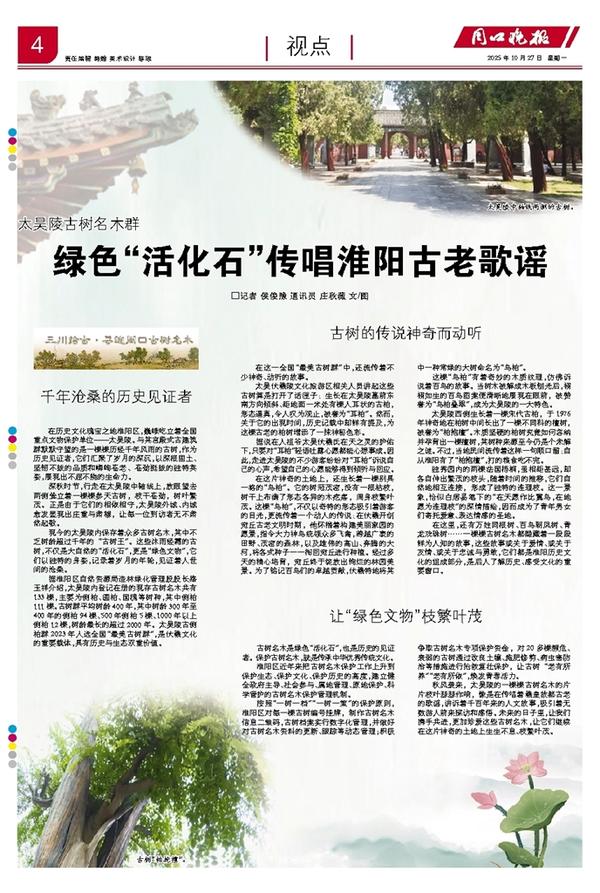 在这里,还有万姓同根树、百鸟朝凤树、青龙戏珠树……一棵棵古树名木都隐藏着一段段鲜为人知的故事,这些故事或关于爱情、或关于友情、或关于忠诚与勇敢,它们都是淮阳历史文化的组成部分,是后人了解历史、感受文化的重要窗口。