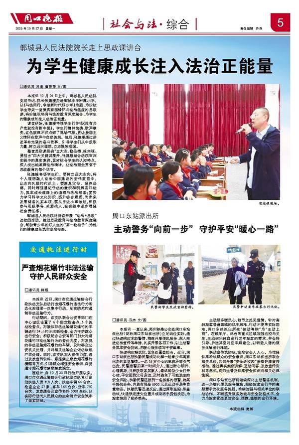 本报讯 10月24日上午,郸城县人民法院党组书记、院长张建援走进郸城中学附属小学,以《与法同行,争做新时代好少年》为题,为该校学生带来一堂兼具家国情怀与法治温度的思政课,将价值观培育与法治教育深度融合,为学生的健康成长注入法治正能量。