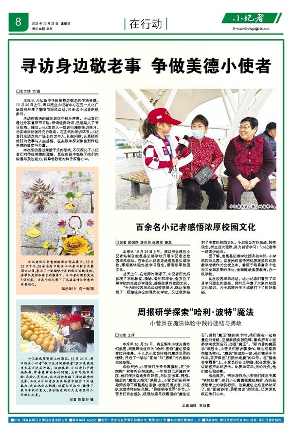 小记者秋日创意拼贴部分作品展示。10月26日下午,20余名周口报业小记者与家长齐聚周口公园,参与了一场趣味十足的秋日实践活动。在带队老师和家长的指导下,小记者们顺利完成5项任务,为这个秋天留下了充满温情与创意的珍贵回忆。