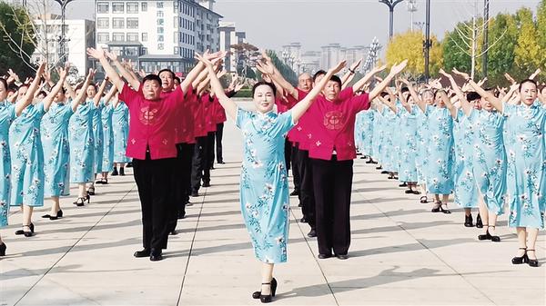 10月28日,“九九重阳节”淮阳荷花杯交流展演活动在淮阳区伏羲文化广场温情启幕。来自全市的200余名中老年参与者伴着轻柔的节奏舒展动作,在欢声笑语中共度传统佳节。记者 郑伟元 通讯员 王建新 摄