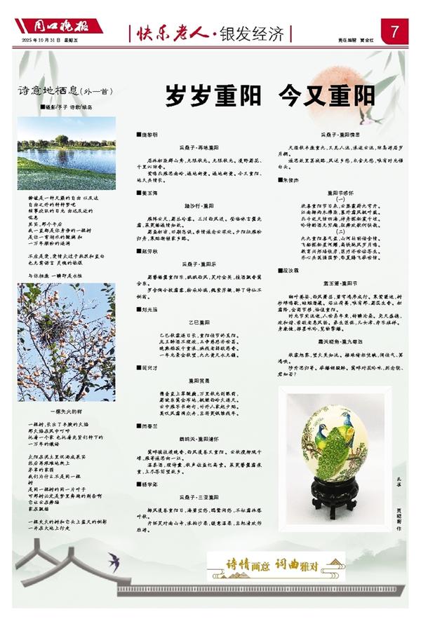 时光节变流逝,人世易年衰,转瞬沧桑。尧天盛德,政和谐、崇敬老惠风扬。养生医保,儿女孝、寿乐祺祥。身康健,挥墨咏吟,览物擎觞。