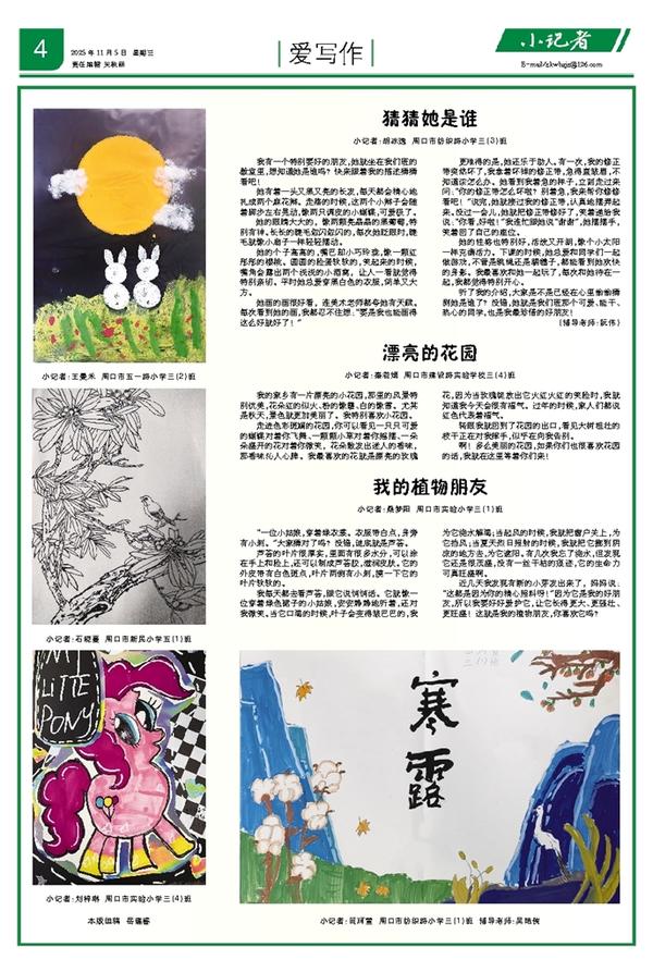 小记者:田珂萱 周口市纺织路小学三(1)班 辅导老师:吴艳侠