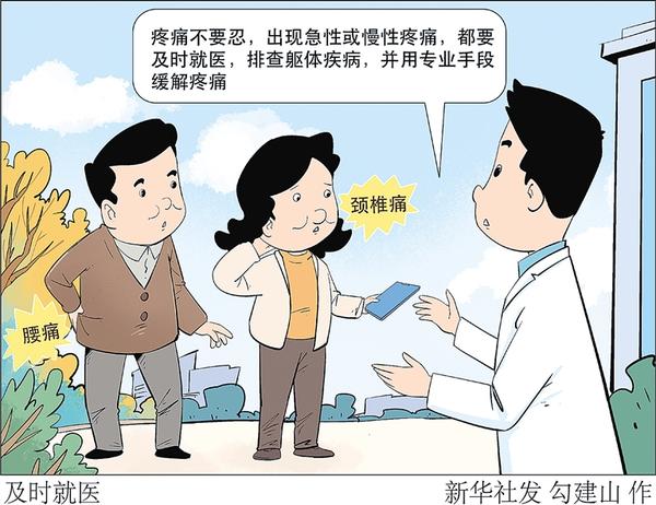 从腰痛、颈椎痛,到带状疱疹灼烧般的神经痛,再到挥之不去的慢性疼痛乃至癌痛……疼痛,影响着许多患者的生活质量和身心健康。对于疼痛,有人认为“忍忍就过去了”。但现代医学认为,疼痛是继心脑血管疾病、肿瘤之后的第三大健康问题。专家提示,疼痛不要忍,出现急性或慢性疼痛,都要及时就医,排查躯体疾病,并用专业手段缓解疼痛。 新华社发 勾建山 作