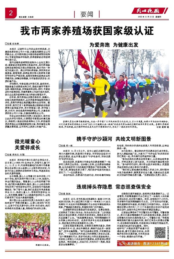 本报讯 记者昨日从市农业农村局获悉,太康县牧原农牧公司十六场、太康县鸿源牧业公司两家企业,近日顺利通过中国动物疫病预防控制中心专家组现场评估验收,获得国家级动物疫病净化场认证。