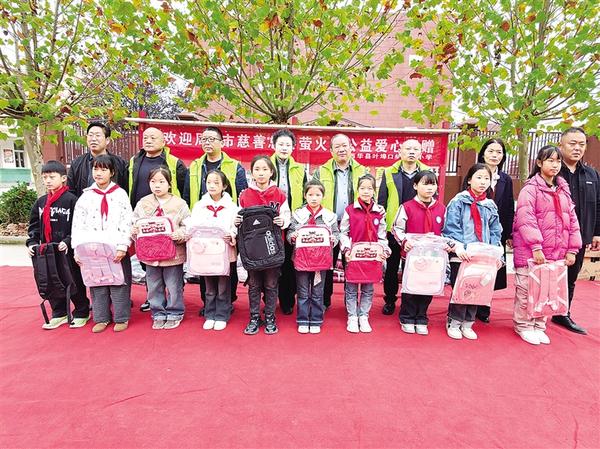 本报讯 西华县叶埠口乡是外出劳务大乡,该乡第二小学的386名学生中,有留守儿童185人。11月11日,时刻牵挂着他们的周口市慈善联合总会萤火虫公益爱心人士驱车前往该校,为孩子们送上崭新的衣物和学习用品,传递来自社会的关爱和温暖。