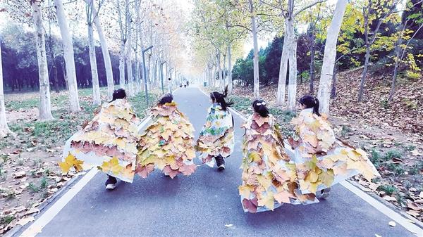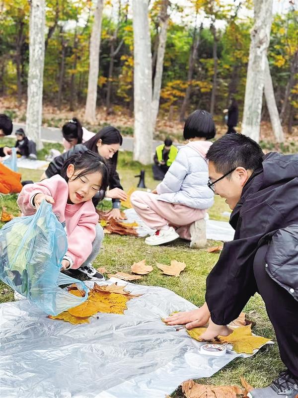 完成徒步打卡后,活动进入创意手工环节。小记者家庭利用沿途收集的形态各异的落叶,发挥奇思妙想,制作专属手工披风。在作品展示环节,孩子们身着色彩斑斓的落叶披风自信亮相,每一件作品都承载着独特的想象力与亲子协作的温情。