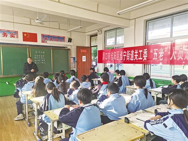 本报讯 近日,淮阳区淮宁街道关工委走进新华小学,组织开展“‘五老’进校园·关爱未成年人健康成长”活动。