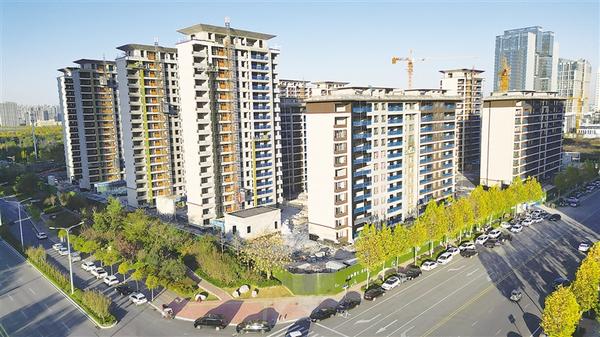当日上午,煦暖的阳光照进周口市文昌大道与腾飞路交会处东南角的二号院项目工地,前排已完成真石漆饰面的楼体,外立面米白色与深咖色相间,色泽靓丽庄重,建筑肌理简约时尚。