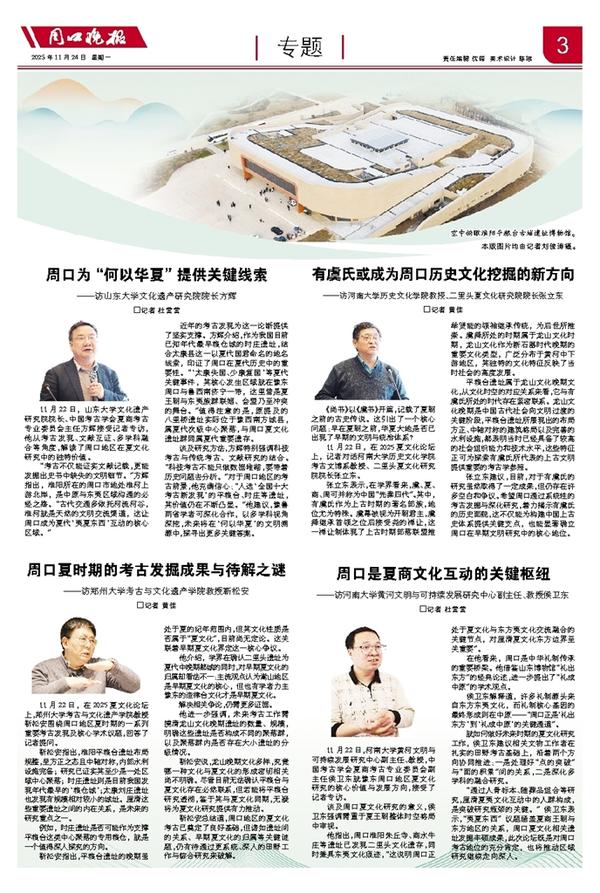 11月22日,河南大学黄河文明与可持续发展研究中心副主任、教授,中国考古学会夏商考古专业委员会副主任侯卫东就豫东周口地区夏文化研究的核心价值与发展方向,接受了记者专访。