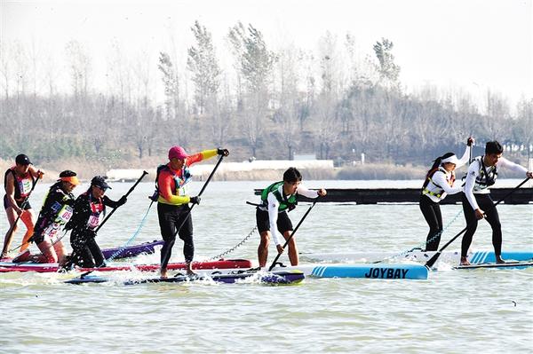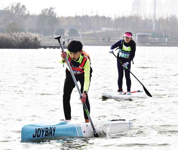 本报讯 一棹逍遥天地间,浮沉烟浪自从容。11月22日,2025年河南省第二届“桨板环湖”邀请赛周口站在烟波浩渺的引黄调蓄湖擂响战鼓。来自湖北、安徽、河南、北京等省市的150余名桨板健儿挥桨破浪、竞速湖上,点燃冬日水上运动的炽热激情。