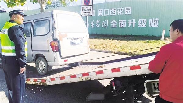本报讯 为有效净化城市道路环境,提升公共停车资源利用效率,近日,周口市公安局交警部门在全市范围内持续开展“僵尸车”清理整治专项行动的同时,精准发力、连续查缉多辆上路报废车,着力营造安全、畅通、有序的交通环境。