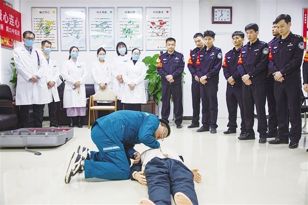 医务人员为民警讲解急救知识。为深入践行爱警暖警举措,扎实推进警医共建协作,切实保障一线民警身心健康,11月27日,郑州铁路公安处周口东站派出所联合周口市中医院共同开展“冬暖护航 健康爱警”主题义诊活动,以务实举措诠释“人民警察为人民,医疗服务护平安”的深厚情怀。通讯员 马杰 摄