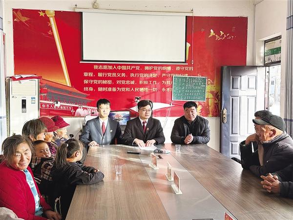 检察干警向村民讲解法律知识。近日,太康县人民检察院组织干警前往板桥镇兵马张行政村,开展“送法进乡村”普法宣传活动。此次活动将法律知识、司法服务与典型案例送到了群众“家门口”,检察干警零距离倾听民声,面对面为村民释法解惑,受到了村民们的热烈欢迎。通讯员 薛娇雅 摄