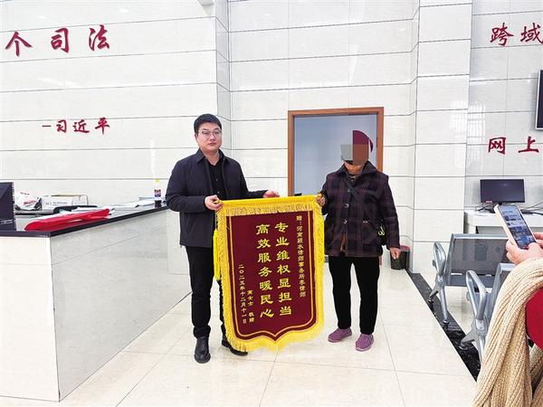 “真的太感谢你了!没有李律师的帮助,我真不知道该怎么办。”近日,高奶奶在沈丘县人民法院大厅等待了一上午,只为亲手将一面印有“专业维权显担当,高效服务暖民心”字样的锦旗送给刚刚结束庭审的李军旗律师。