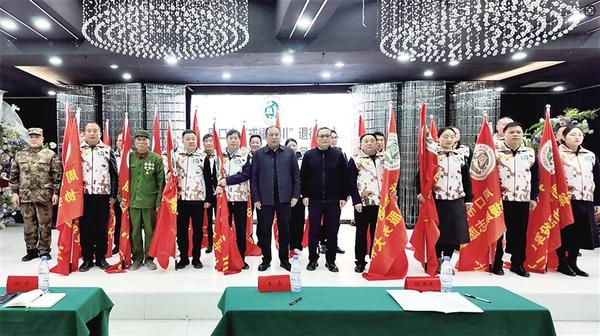 仪式在庄严的国歌声中拉开序幕,气氛肃穆而热烈。现场,一面面崭新的“戎耀三川”志愿服务队旗格外醒目,它们不仅承载着军人对党忠诚、为国奉献的鲜亮底色,更凝聚着服务人民、回馈社会的温暖承诺。旗帜的传递,象征着使命的接续与责任的担当。