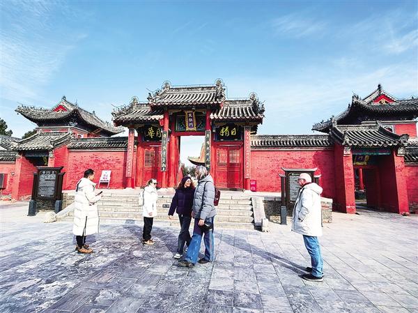 12月21日,冬至,淮阳太昊陵红墙映古殿。当日,几名外国游客在此参拜人文始祖太昊伏羲、撞钟敲鼓祈福,沉浸式感受中华始祖文化的独特魅力。通讯员 王锦桥 摄