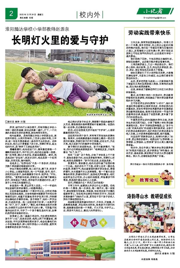 日常工作中,赵源泉从未讲过什么大道理。但他的每一个晨昏,每一次奔赴,每一滴汗水,每一刻坚守,都在默默书写答案。那答案,写在受伤孩子伏靠的温暖脊背上,写在他伸出接住污物的双手中,写在深夜高铁窗外飞驰的灯火里,更写在千百个孩子安然入梦的宁静校园夜色中。