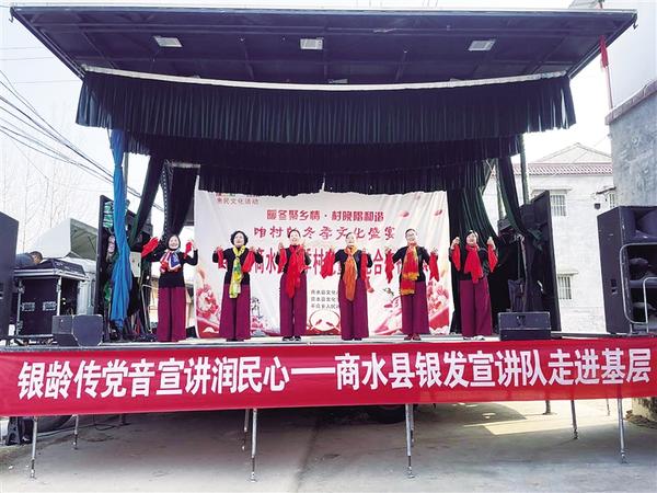 本报讯 为深入学习宣传贯彻党的二十届四中全会精神,丰富基层群众精神文化生活,近日,商水县委老干部局组织“银发宣讲队”到平店乡王老村开展了一场集政策宣讲、文艺演出与暖心服务于一体的活动。