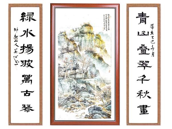 而对联,则是中堂画的“文眼”。身为中国美术家协会、中国书法家协会“双料”会员,祝英公特意为这幅新作题写“青山叠翠千秋书,绿水扬波万古琴”的对联。“这种中堂画配对联的书画合璧方式,才能让作品的文化内涵更饱满、艺术意境更完整。”他特别强调,中堂画与对联的搭配大有讲究,如同穿衣戴帽,需相得益彰:画风细腻工整,宜配规整厚重的隶书;笔墨潇洒写意,当衬流畅飞扬的行草。