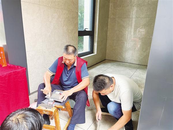 进入8号楼参观,入户大堂门把手裹着红棉布,大堂内布置休闲沙发,干挂石材墙壁贴有身高贴和励志标语,物业公示栏位置醒目,管家和保洁员的服务事项一清二楚,两个电梯入户门前贴有“电梯空间尺寸图”。整个大堂一尘不染,既充满人文关怀,又洋溢文化气息。
